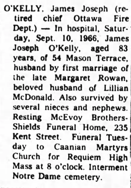 Chief James O’Kelly passed away on September 10, 1966.