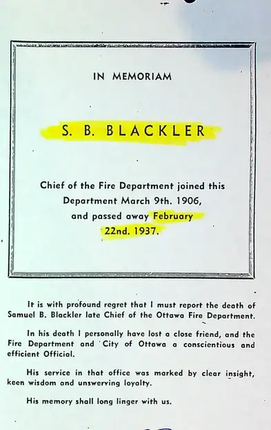 Chief Samuel Blackler passed away February 22, 1937.