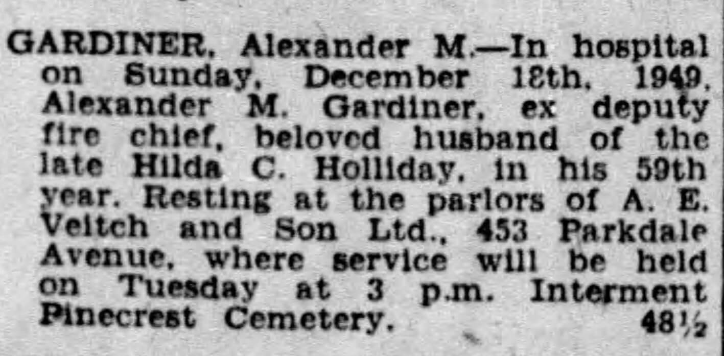 Chief Gardiner retired on April 22 1948 and passed away December 18th 1949