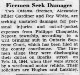 When Alex Gardiner came back from war he returned to firefighting duties with Ottawa Fire. Fron the Ottawa Journal December 30 1947
