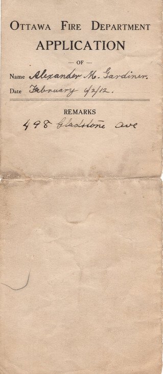 Alex Gardiner joined the Ottawa Fire Department in 1912 and held badge 49