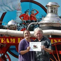 Bytown Fire Brigade members Perry Hall and John McCarthy brought the Silsby to Russell as part of a celebration of the founding of the village and launch of a children's book telling the story of the fire and the heroic efforts to save the village entitled.