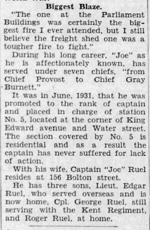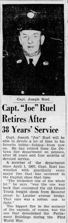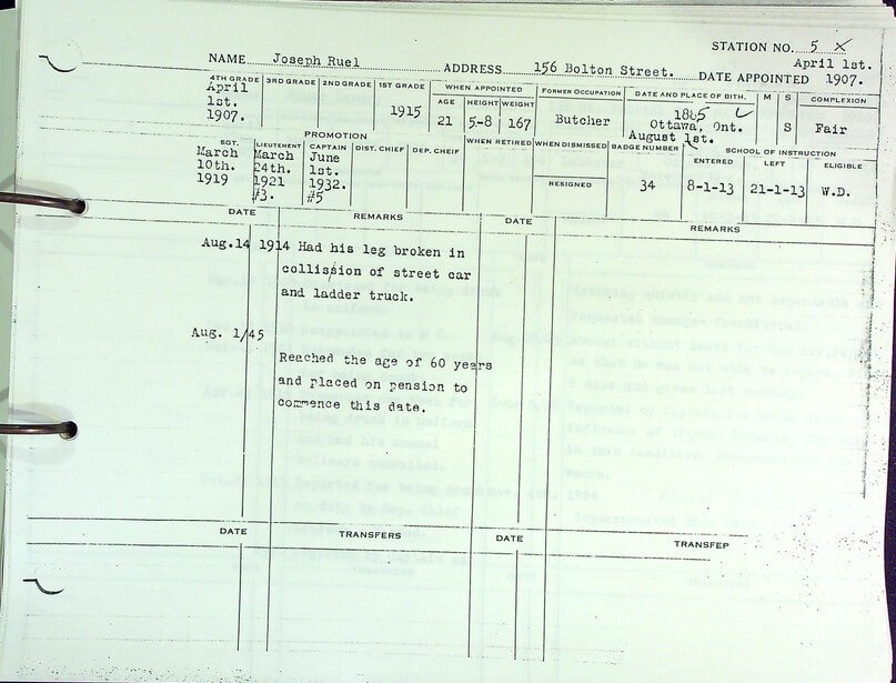 Joseph Ruel personal file with the Ottawa Fire Department