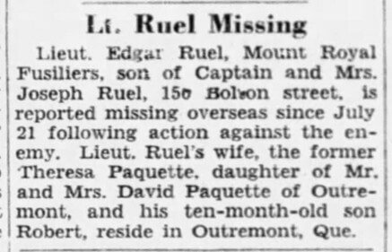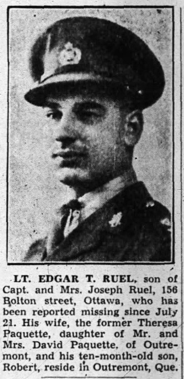 One of Ruel's three sons. Lieut. Edgar Ruel missing in action oversees.