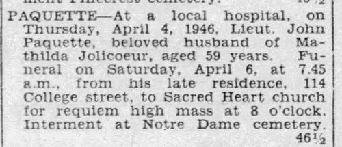 Lt. Paquette's obituary