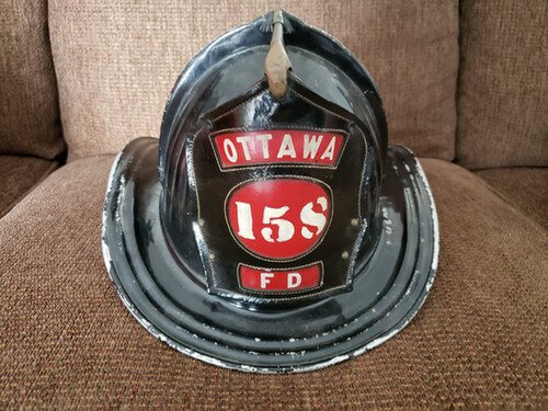 Firefighter Benson's first helmet