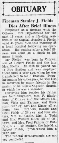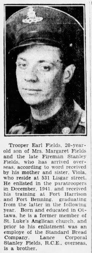 This is the son of Stanley Fields in an article from the Ottawa Citizen. August 30, 1943