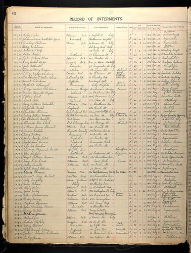 Record of internment at Beechwood Cemetery, Ottawa, Ontario