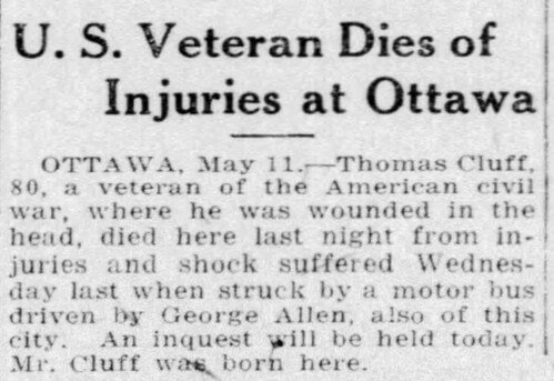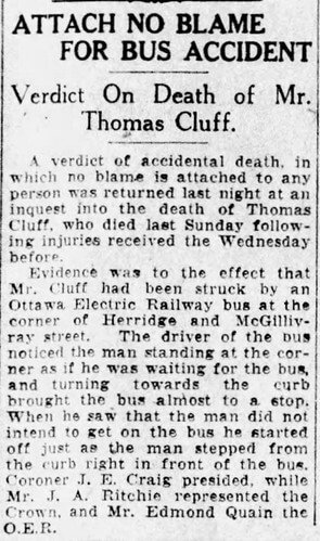 Cluff was struck by an Ottawa Electric Railway bus